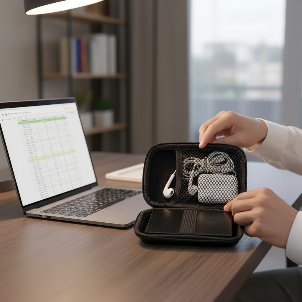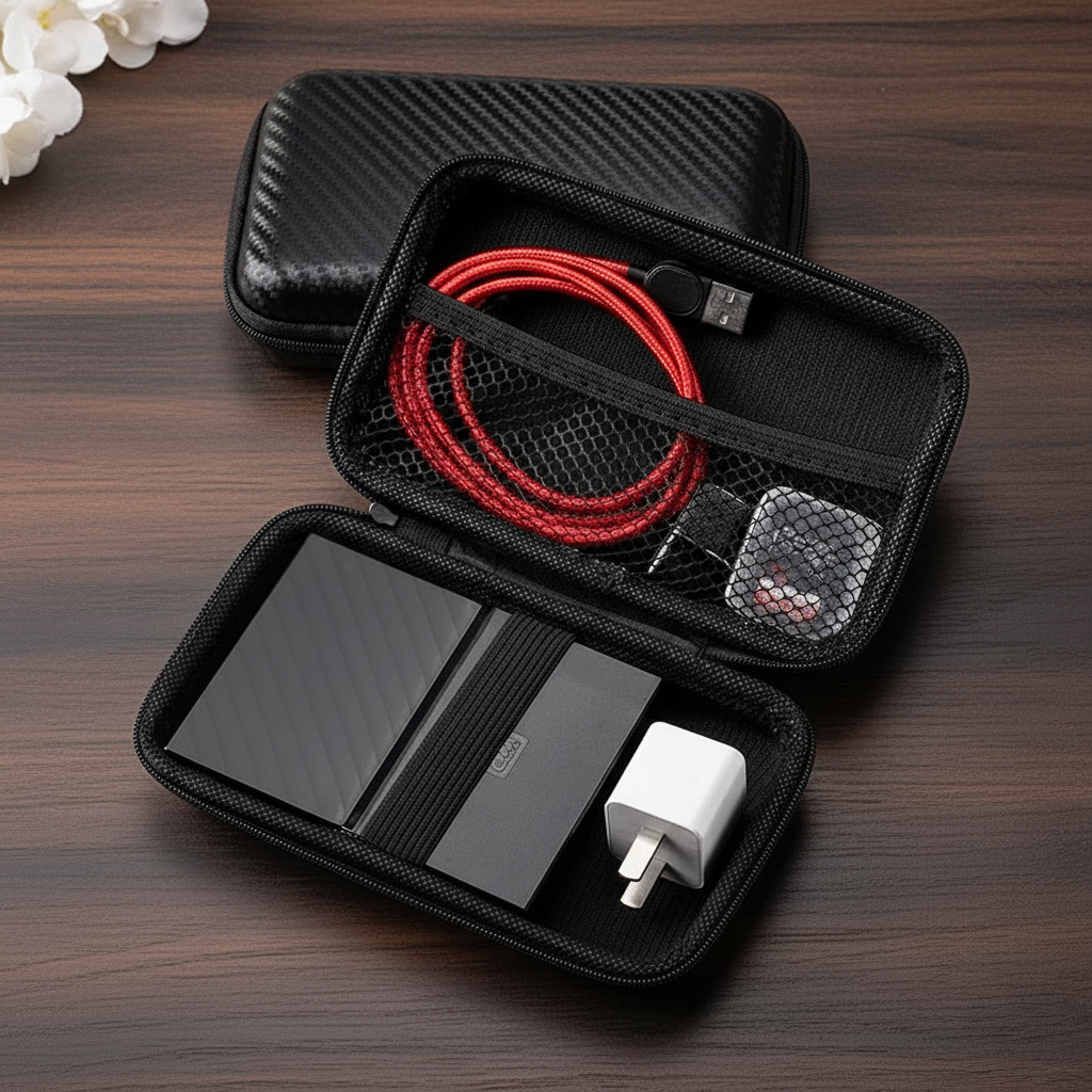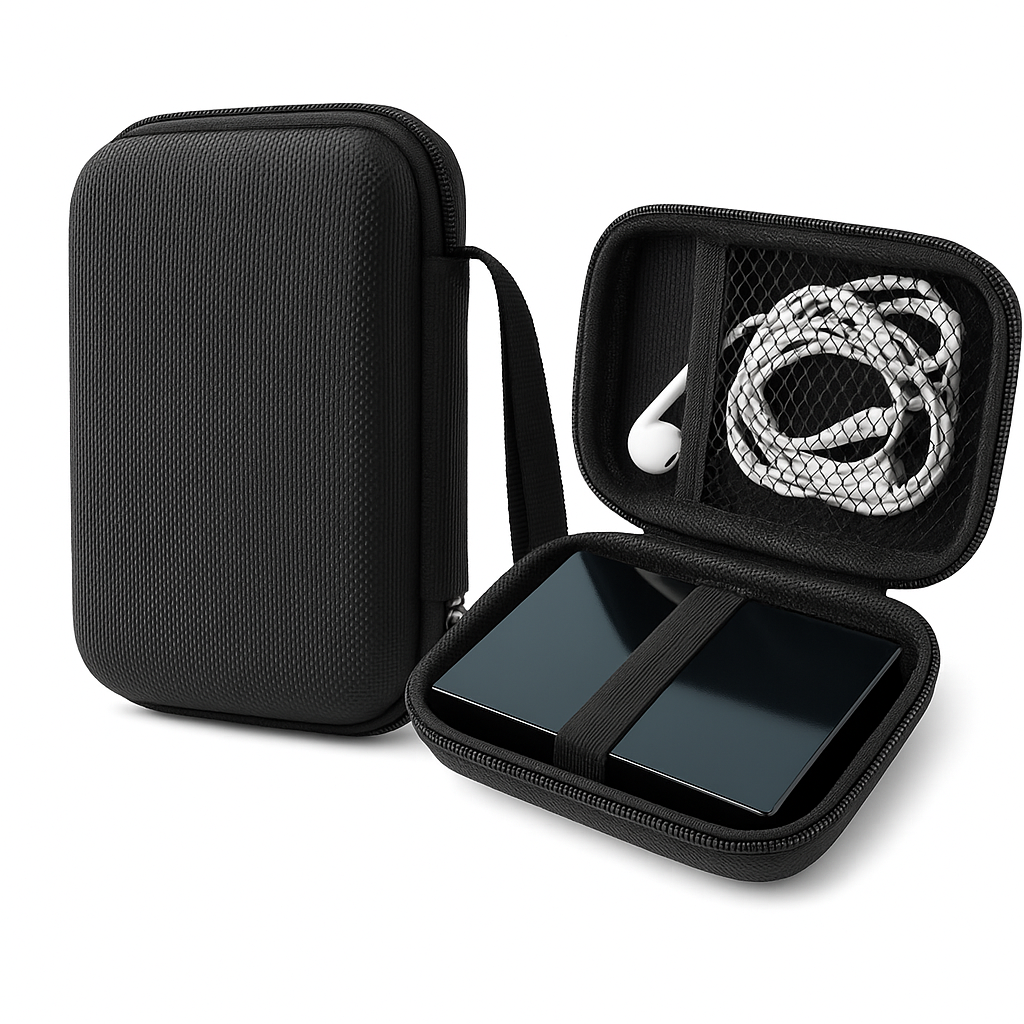 Houd je oordopjes, USB-sticks en kabels netjes beschermd in deze duurzame EVA hardcase. Het compacte ontwerp met zachte binnenvoering biedt veilige, georganiseerde opslag voor je kleine elektronische apparaten.