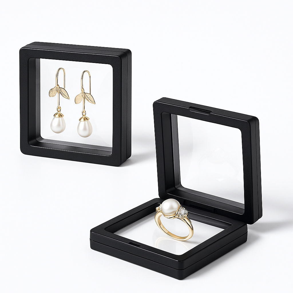 Geef je sieraden een luxe uitstraling met deze zwevende transparante displayboxen die je collectie overzichtelijk, stofvrij en opvallend mooi tonen.