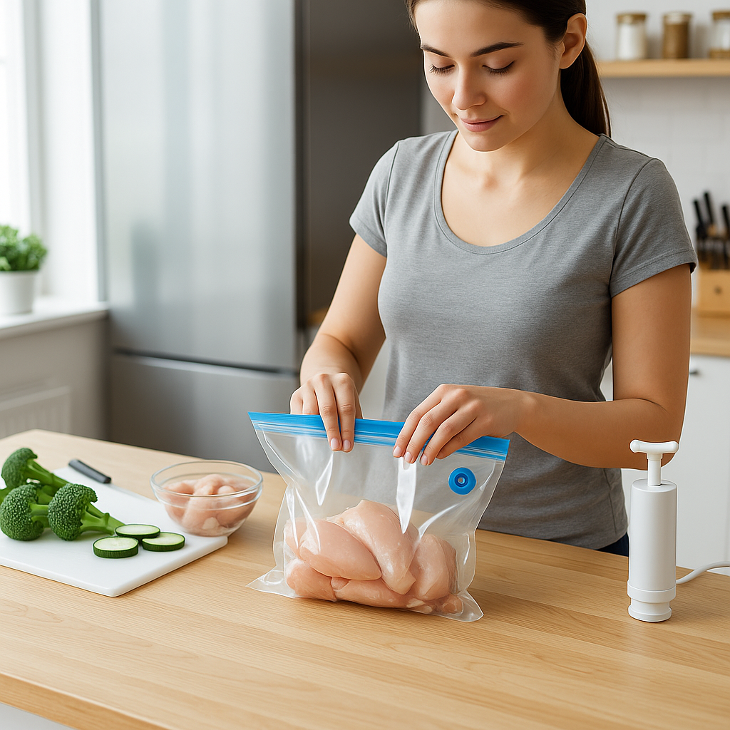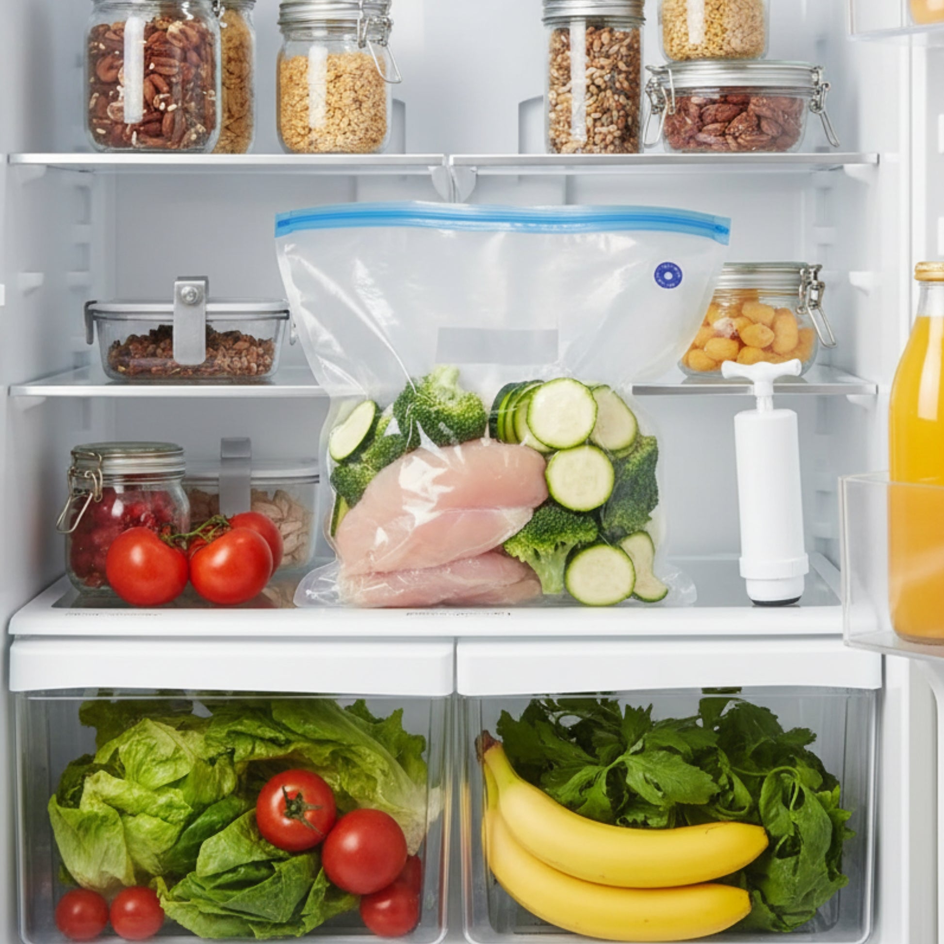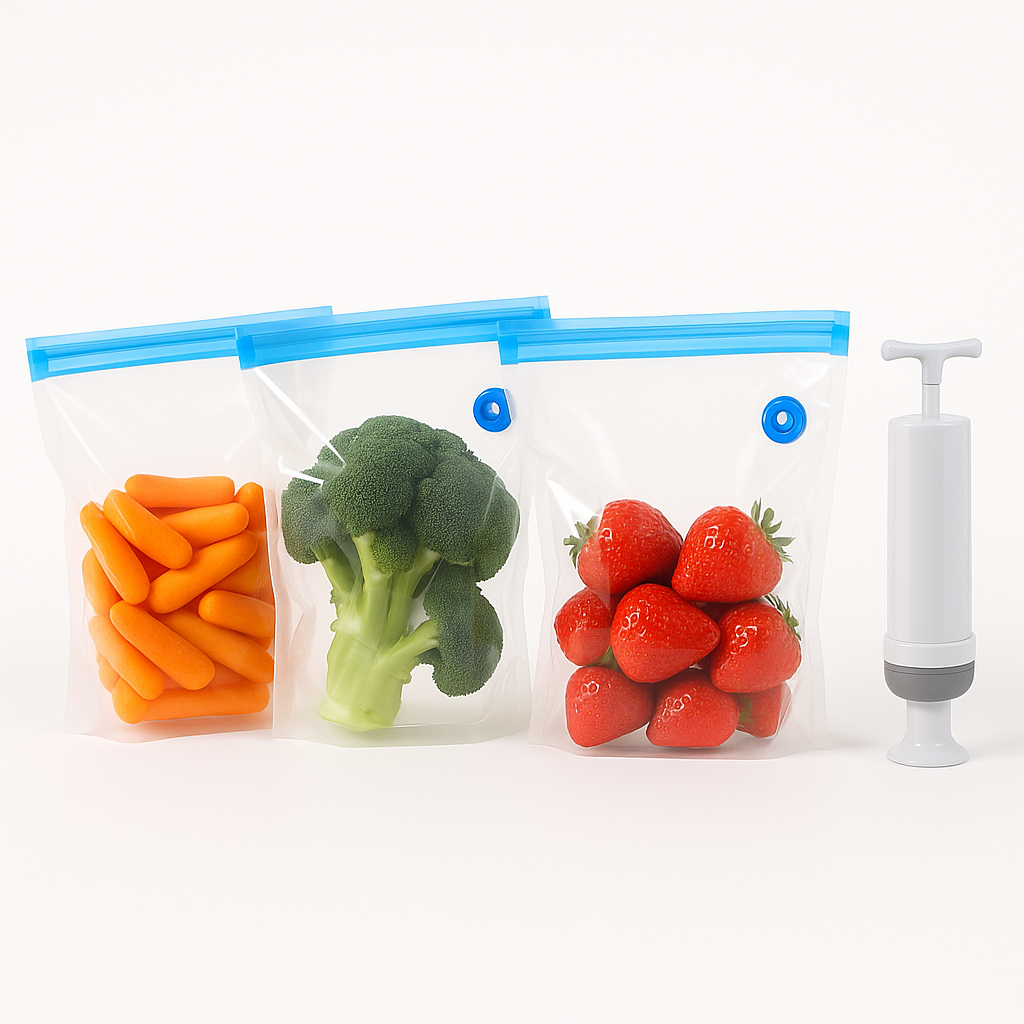 Bewaar je eten langer vers met deze herbruikbare vacuümzakken. Ze sluiten luchtdicht af om smaak te behouden, vocht buiten te houden en voedselverspilling te verminderen.